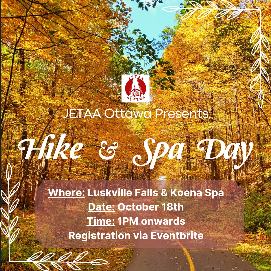 The air is crisp, the trees are changing colours, and the days are getting shorter. On Saturday, October 18th from 1pm onwards, come and enjoy the outdoors as we walk the Luskville Falls Trail, which has a beautiful view of the Capital Region. Afterwards, enjoy some rest and relaxation at Aylmer’s Koena Spa (at a reduced price), which features are variety of outdoor hot baths! To register and read FAQ, click here!